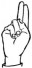 На ћирилици написано МОМИРКА КОРТИ састоји се из 12 слова [?]. Исписано ћириличном једноручном азбуком за глувонеме: